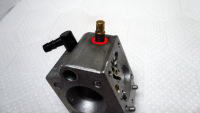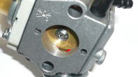 G260PUHに標準添付されているキャブレターで今のところ Walbro社(ウォルブローが正式)のキャブレターが使われています。 ダイヤフラム式で薄いシートがピストンの動く際の空気圧力を利用して、燃料をタンクから吸ったり溜め込んだりするのを制御する方式です。 シンプルな部品構成で整備性に富んでいますが、ダイヤフラムと呼ばれる部品は熱による変形があり、動作不安定に陥りやすいのが欠点です。 また、気温や気圧の変化に敏感でこまめなニードル調整を必要とし、不十分な調整は焼き付きや振動を招き易くなります。 しかし、G260PUHの高性能を十二分に引き出す部品として欠かせない部品でもあります。